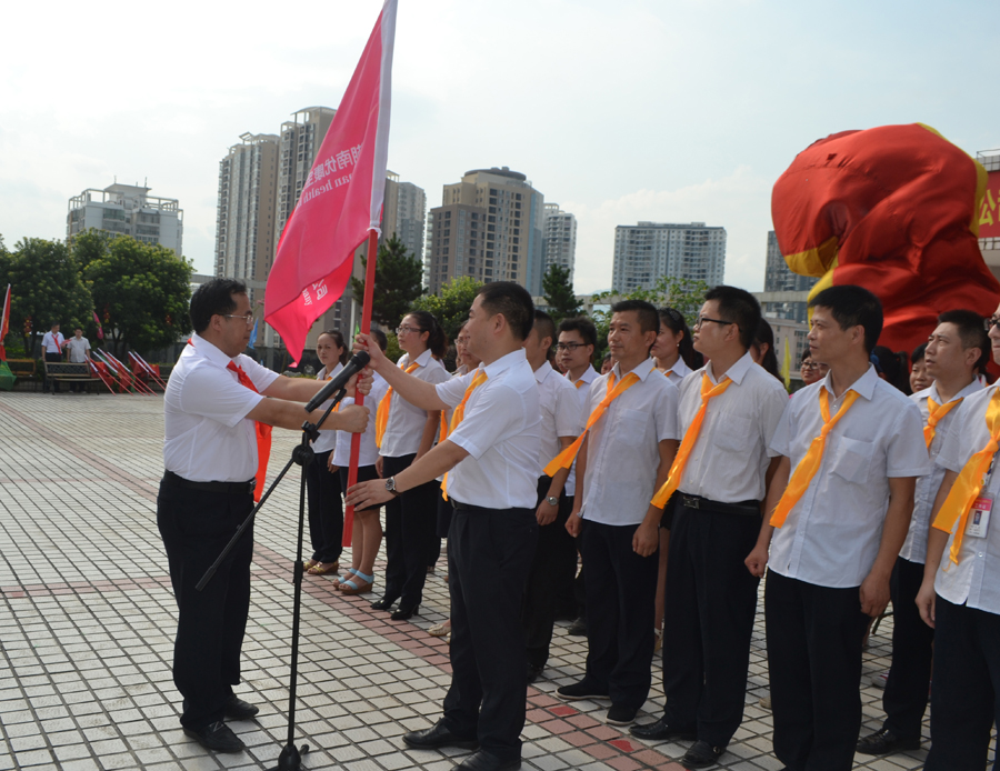 迎着夏日艳阳,各公司负责人从林董事长手中接过庄严神圣的司旗,这一刻代表着三年倍增的征途即将启航,代表着挑战与机遇同在,代表着战场的号角已吹响,代表着三年倍增的目标即将成为怀仁百年伟业中的精彩篇章,代表着智慧勤劳的怀仁人将在这个伟大的时代千帆竞发,百舸争流……