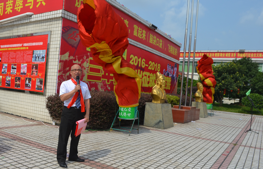 出征仪式上,林董事长作了怀仁集团“三年倍增出征就职宣誓”动员讲话,句句鼓舞士气,字字催人奋进。他说:过去的一年,是拼搏的一年,奋进的一年,腾飞的一年。在集团公司董事会的正确领导下,2015财年各公司各部门稳中求进,发奋进取,创新超越,取得了一次又一次辉煌的胜利,创造了一个又一个激动人心的光荣与梦想。今天,我们又一次走到岁月的新起点,站在集团公司三年倍增战略的起跑线上,忆往昔,我们春华秋实,无怨无悔,展未来,我们豪情满怀,壮志凌云!