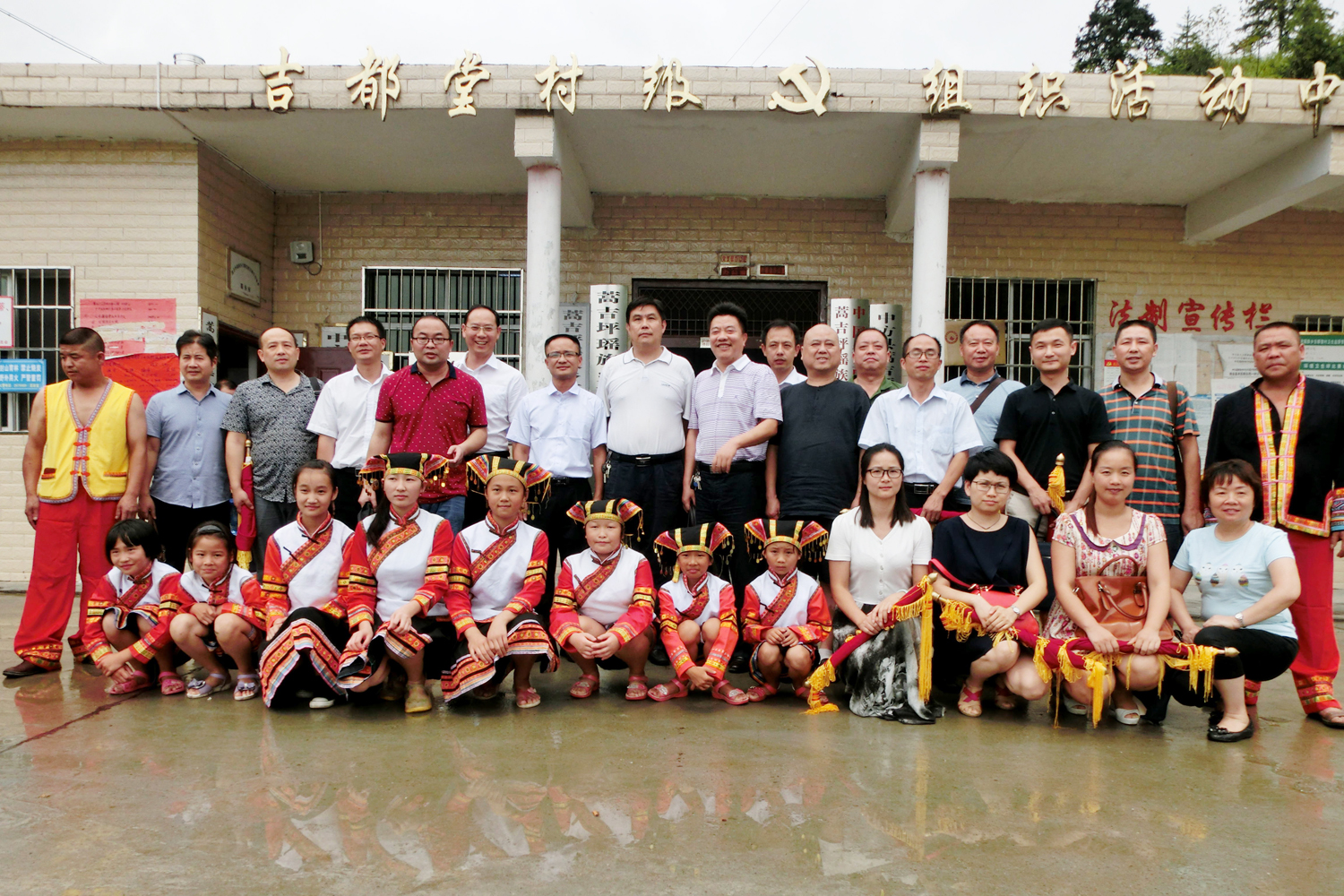 上午9点,怀化市药监局局长周世刚率领14家企业代表从怀化驱车前往吉都堂村,沿途山路崎岖、弯多路险、天气恶劣,经过4小时的车程,终于抵达蒿吉坪瑶族乡与锦溪乡的交界地——吉都堂村。