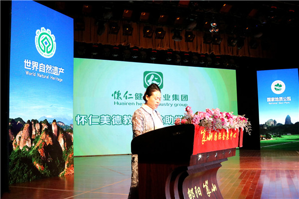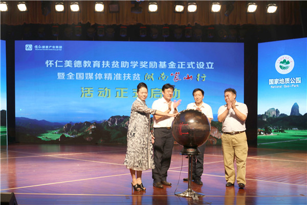 9月22日,由湖南日报报业集团组织、发起的“全国媒体精准扶贫(湖南)崀山行”媒体见面会、崀山旅游推介会在崀山国际会展中心主会场隆重召开。湖南日报社党组书记、社长、湖南日报报业集团董事长蒋祖烜,邵阳市委常委、宣传部长王长忠,新宁县委书记秦立军,新宁县委副书记、县长谭精益等领导,以及怀仁健康产业集团执行总裁陈毳萍,与全国近百家媒体记者代表参加发布会。 当晚,怀仁健康产业集团捐赠100万元设立“怀仁美德教育扶贫助学基金”。