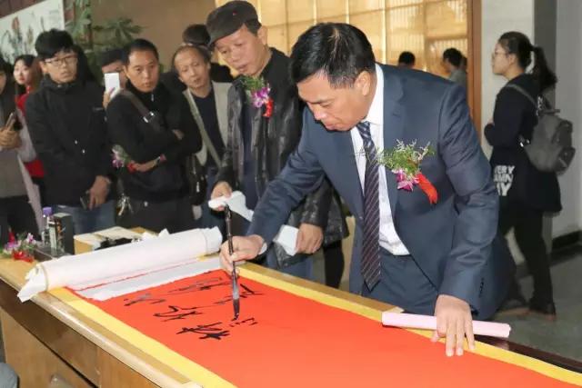 怀仁集团董事长林承雄作为特邀嘉宾出席开幕式并致辞。他首先对远道而来的中央民族大学美术学院教授李魁正先生、中央美术学院研究生院教授罗世平先生和来自全国各地的艺术家们表示热烈的欢迎!林董事长热情洋溢地说,经过几个月的精心策划和筹备,我们共同迎来了怀化文化艺术领域的一场盛宴——“艺道仁怀”中国画名家邀请展。中国画与京剧、中医药一起,并称为中国的三大国粹,它以独特的艺术手法和艺术表现力,“干裂秋风,润含春雨”,于抑扬顿挫、疏密粗细、快慢虚实、浓淡干湿中,通过一草一木,一山一石,一景一物,折射出作者的文化修养和艺术功力,表达出作者的哲学思想和人生理想。今天,我们与德艺双馨的绘画艺术家们和广大中国画爱好者一起,在工笔线条、水墨山水中,共同领略传统中国画的气韵魅力,感受艺术与美的精神熏陶,真是幸甚至哉!