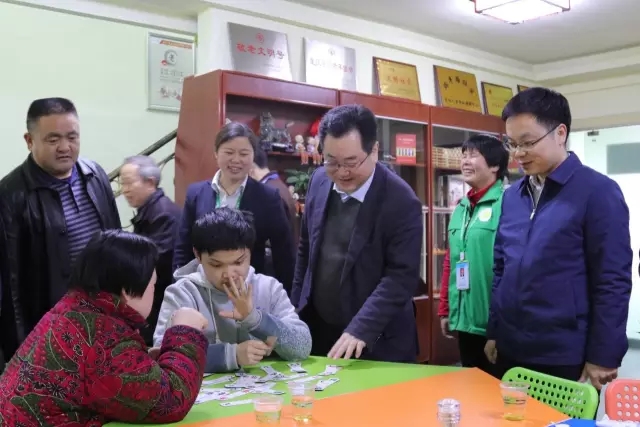3月17日下午,怀化市副市长欧阳明来到位于鹤城区城北街道瑞丰路社区的怀仁金秋助残服务中心,视察调研鹤城区政府购买残疾人居家托养工作。市残联理事长曾云、鹤城区副区长肖明、区残联理事长汪伟、城北街道办事处书记彭银梅等领导陪同。