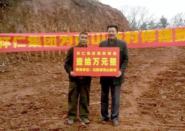 去年春节前夕,怀仁大健康董事长林承雄看望慰问员工父母时,来到沅陵县沅陵镇南山新村,途径一条困扰村民出行的泥泞小道,望着五强溪库区秀美的水土良田和漫山遍野丰盛的林木资源,再看看乡亲们仍然简陋贫困的生活状态,林承雄董事长当即决定捐款把这条路修好。“路修好了,山里的特色产品卖出去就能增加收入,村民出行也更方便。”林董事长表示。2017年2月,受林承雄董事长委托,怀仁大健康副总裁舒敏代表公司将10万元修路捐赠款送到了沅陵县沅陵镇南山新村村主任张斌手中。