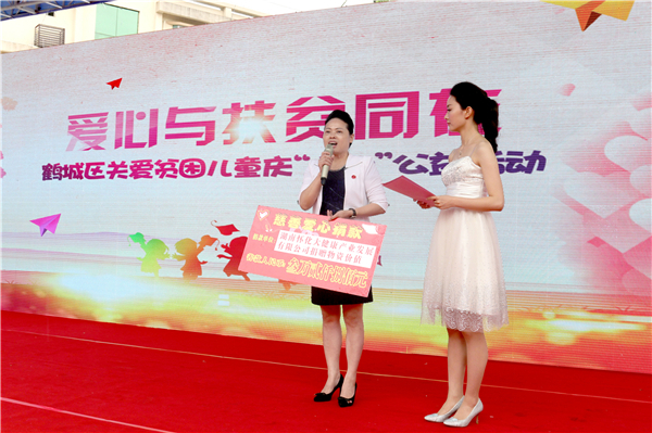 通过一段《留守儿童》视频,让现场市民了解到在美丽的鹤城区山乡还有许多可爱的孩子,他们正是如花的年纪,他们学习成绩优异,但是却因为贫困急需社会的关爱与帮助。随后,鹤城区直单位、爱心企业代表纷纷走上台,为贫困儿童捐赠爱心资金。