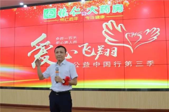 怀仁大药房总经理刘子杰发言,要求怀仁员工熟悉品种,服务顾客。他强调,专业是王道,有文化才有专业,有专业才有爱心,有爱心才能将事情做好。一定要用一颗医者仁心帮助顾客解决疾病困惑,为消费者提供一如既往的专业化服务,才能做好公益,在活动中展现企业的良好文化和服务理念。