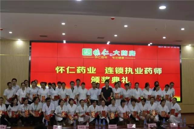 启动仪式结束后,怀仁大健康副董事长陈毳萍、怀仁药业总经理刘子杰还为新考取的执业药师颁发了荣誉证书及奖金,并合影留念。