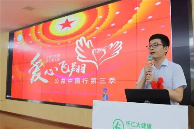 杭州核力欣健实业股份有限公司品牌营销中心总经理陈荣华代表“爱心飞翔”第三季活动项目团队“7+1”医药工业企业致辞,感谢怀仁大药房积极参与“爱心飞翔”第三季活动,并代表活动项目团队表态,将在活动开展过程中做好服务,做好保障。