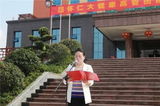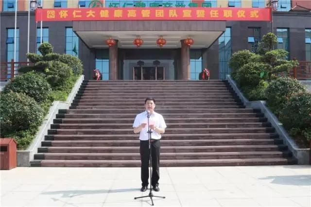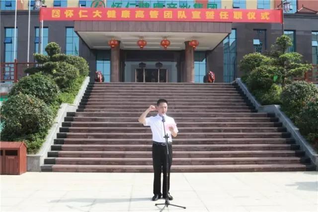 林承雄董事长发表了激情洋溢的致辞,代表怀仁大健康董事会向大家表示热烈的祝贺和美好的祝愿!他说,怀仁大健康组织架构成立、总裁室以及怀化本部、长沙总部、贵州公司、中药事业中心(博世康)、物流事业中心(怀仁药业)各部门领导成员通过庄严的仪式宣誓入职并接受战旗,这标志着怀仁大健康为主板上市而进行的内部整合工作基本完成,怀仁大健康这艘健康产业的巨轮已经起航。今天,站在一个全新的历史起点上,我们比任何时候都更加坚定心中的信仰和追求,比任何时候都更加接近实现大健康产业的目标与梦想,比任何时候都更加需要激情奋斗、青春奉献!一腔热血沸腾时,万里汪洋起波澜。面对怀仁大健康全新的机构、职能、使命,展望怀仁大健康光辉灿烂的未来,此时此刻,任重道远,千言万语,我对你们提出几点希望和要求:第一、讲真话。提倡讲真话、坚持讲真话,让大家能讲真话,敢讲真话,愿讲真话,打开建言献策言论直通道。第二、干实事。营造舆论氛围,采取有力措施,引导全体员工扑下身子,为基层为员工,干实事、出实招、求实效,扎扎实实提升怀仁大健康的服务质量和水平。第三、敢担当。责任重于山岳,能者方可当之。管理团队特别是高管更要具备责任意识、大局意识,要建立首问责任制,提倡全员敢于担当、舍我其谁的工作精神。第四、强专业。启动背说明书工程,每月开展专业知识考试,形成配套的措施,用扎扎实实的行动,提升我们的专业知识水平,打造怀仁大健康核心竞争力。