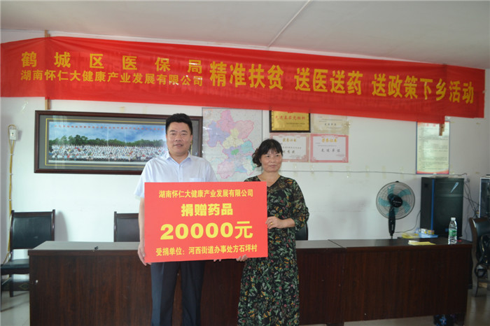 方石坪村隶属鹤城区河西街道办事处,毗邻芷江县公坪镇与红岩电站。2017年是鹤城区扶贫攻坚的决胜年,为实现按预定计划“村出列、人脱贫”,怀仁大健康积极加入鹤城区“万企帮万村”行动计划,承担企业社会责任,奉献一份扶贫帮困爱心。连日来,怀化各县市区普降大雨,洪涝成灾,尽管怀仁自身很多门店也受灾严重,恢复自救任务繁重,但还是心系贫困山区困难群众,为方石坪村困难群众送去亟需的药品物资。