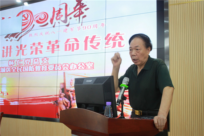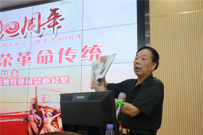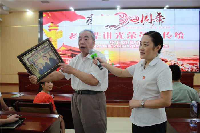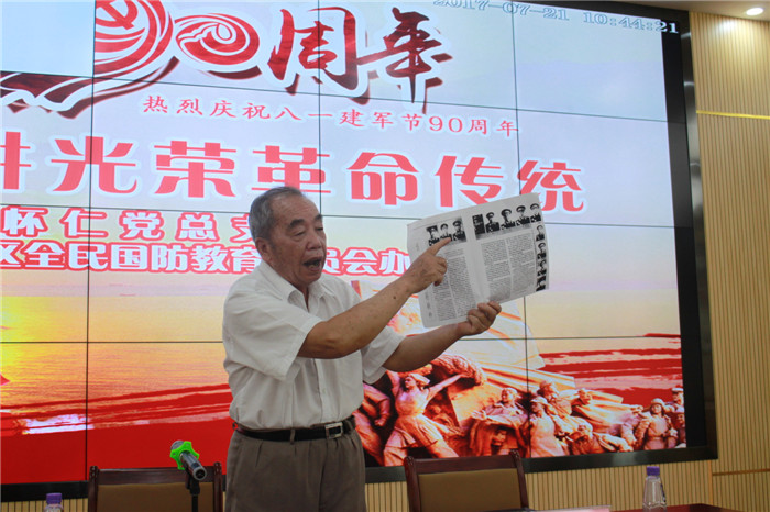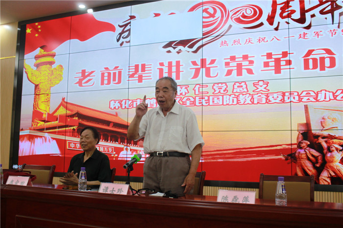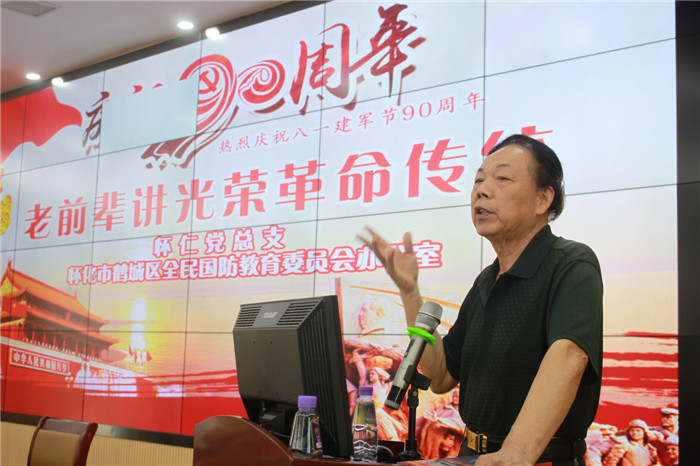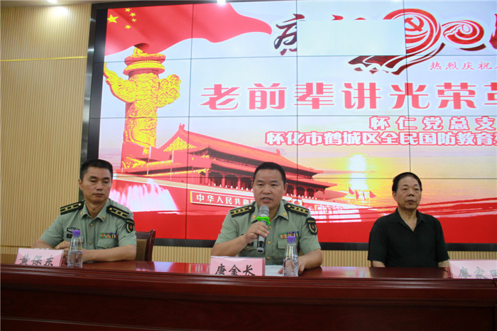 演讲报告开始,鹤城区武装部政委唐金长对两位老前辈的感人事迹进行了介绍,并肯定怀仁大健康开展革命传统教育是落实国防教育的具体举措,支持国防事业的具体行动。