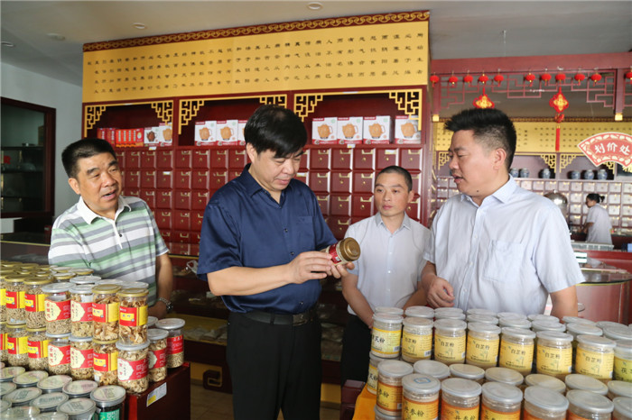 在谭主任的陪同下,彭主任首先来到了位于市中心的怀仁医养健康公司,考察了博世康国医城,怀仁大健康副总裁舒敏、怀仁医养健康公司总经理王祥刚热情迎接省市两位主任,并汇报了国医城的基本情况,彭主任对怀仁的大健康产业生态圈及医养健康公司的服务特色表示赞赏,当得知国医城销售的大部分中药材都是怀化本土优质上乘的道地药材时,彭主任对怀仁的中医药健康产业前景给予充分肯定。