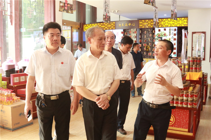 在市人大常委会原副主任李应友等的陪同下,郭主任一行首先来到了怀仁大健康医养公司,参观考察了博世康国医城。怀仁大健康副总裁舒敏、怀仁医养健康公司总经理王祥刚向郭主任一行介绍并汇报了国医城的基本情况及“医、养”结合的中医药经营特色,郭主任等对博世康国医城“名医好药、道地药材”的经营理念表示肯定。