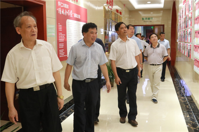 怀仁智慧文化展厅琳琅满目的企业荣誉及产品陈列,引起了郭主任等一行省市领导的极大兴趣,林承雄董事长向省市领导介绍汇报了怀仁大健康的基本情况、主要荣誉及公司产品,“怀仁牛”的企业文化精神,员工荣誉文化墙,怀仁健康一日游产品体验营销展厅得到了省市领导的一致首肯。郭主任赞扬道:“怀仁的企业文化做得好,让员工有归属感、荣誉感!”