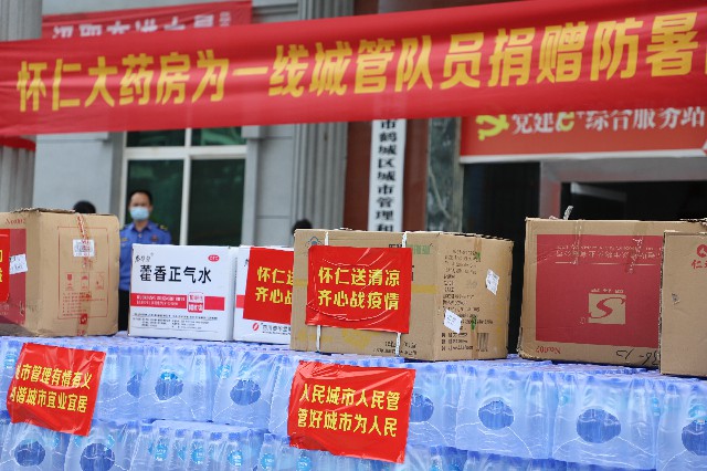 当前,高温酷暑仍在延续,新冠疫情多点频发。城管工作点多面广,身处基层,暴露在炎热环境,逆行在抗疫路上。怀仁大健康副总裁舒敏表示:衷心希望今天捐赠的防暑防疫物资能为城管人员带来一丝清凉,增添一份健康平安;也希望更多人理解支持和关心城管一线工作者。