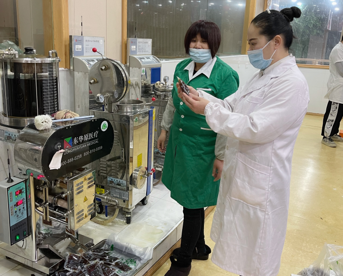 陈毳萍书记现场了解中药熬制情况