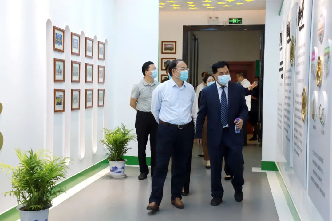 在怀仁党建展厅,林承雄董事长介绍了公司党建工作情况。怀仁把党建工作与企业经营管理、建设先进企业文化结合起来,探索出了一套以“望闻问切”为抓手,充分体现中医药传统文化底蕴,紧密结合企业经营特色与风格的党建工作方法。伍国用副局长对怀仁20多年的发展,尤其是在企业文化的沉淀和积累给予充分肯定。