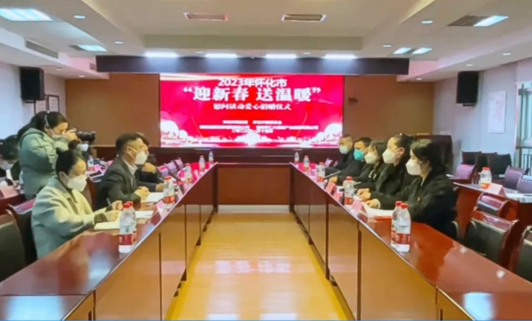 1月14日,怀化市2023年“迎新春送温暖”爱心捐赠活动在市民政局举行。怀仁大健康产业集团向怀化市慈善总会捐赠价值40万元的2000份米和油。春节前,这批生活物资将由各级民政部门送到怀化13个县市区的2000户特殊困难家庭人员手中,让他们渡过一个温暖幸福的春节。