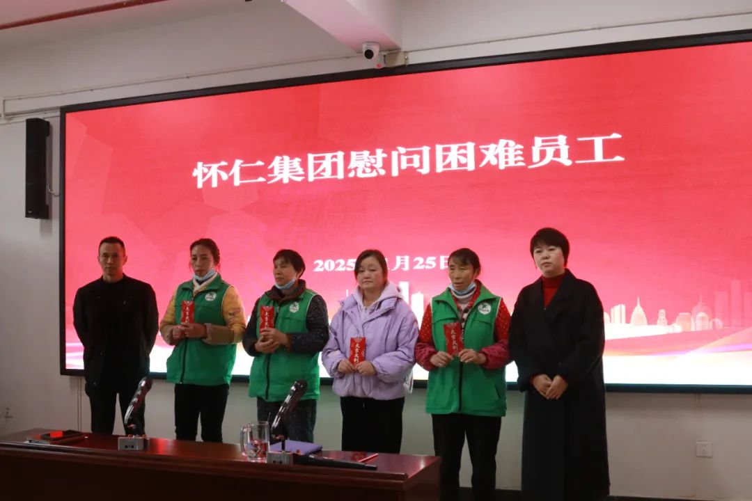 1月25日,怀仁集团林承雄董事长、怀仁党委陈毳萍书记在2025年春节即将到来之际,个人出资发放慰问金,提前让工会收集相关信息,经核实讨论后确定困难员工帮扶名单,并亲自对基层员工进行春节“送温暖送关爱”帮扶,这次活动共慰问帮扶45位基层员工。