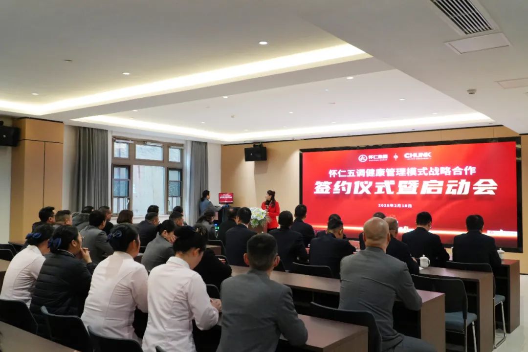 顺应时代齐聚力,开启康养新篇章!2月18日,怀仁五调健康管理模式战略合作签约仪式暨启动会在怀仁五调康养园圆满举行,怀仁集团董事长林承雄,副总裁、五调康养事业群总经理刘小群,五调研修事业部总经理何承梅、五调康养事业群总经理助理刘鹊鸣,湖南创科公司董事长、总经理董炳辉团队一行出席仪式。