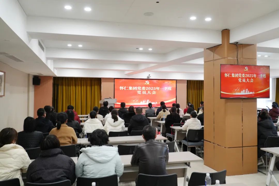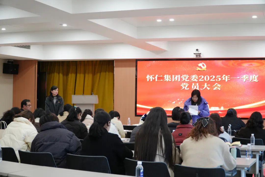2月27日,怀仁集团党委2025年一季度党员大会,在怀仁五调康养酒店举行。怀仁集团党委书记、副董事长陈毳萍,党委副书记、副总裁舒敏,及各支部全体党员、预备党员、入党积极分子等80余人参加。党委组织委员李劲湘主持。