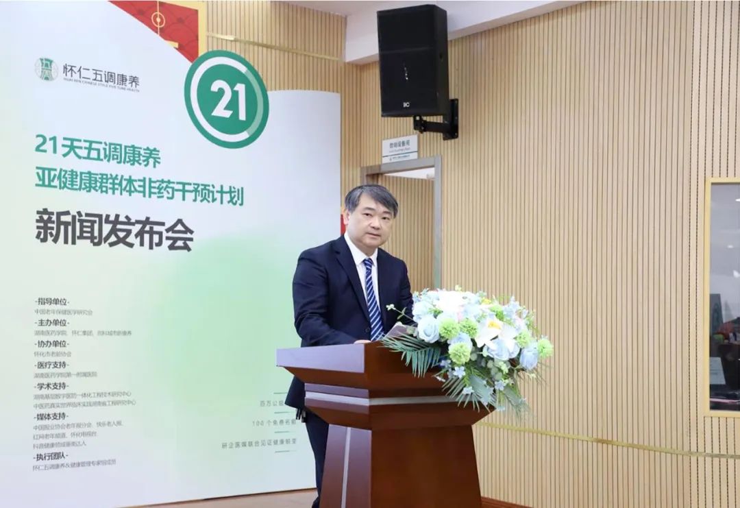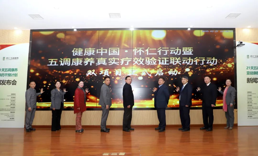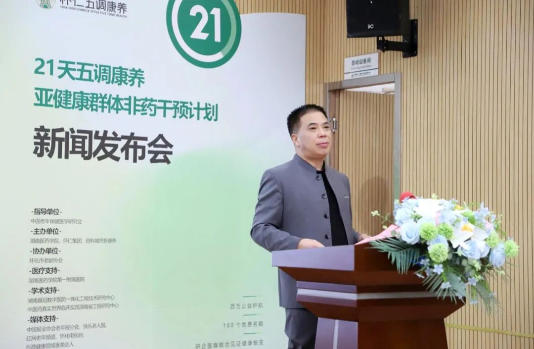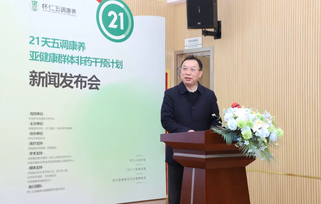 2月27日上午,由中国老年保健医学研究会指导,湖南医药学院、怀仁集团、创科城市新康养主办,怀化市老龄协会协办,湖南医药学院第一附属医院医疗支持,湖南基层数字医防一体化工程技术研究中心、中医药真实世界临床实践湖南省工程研究中心学术支持的“21天五调康养·亚健康群体非药干预计划——百万公益护航·100个免费名额·研企医媒联合见证健康蜕变”新闻发布会在湖南怀化怀仁集团圆满召开。本次发布会以“健康中国,怀仁先行”为主题,旨在积极响应国家《“健康中国2030”规划纲要》战略部署,践行“普怀仁爱,康民济世”的企业使命,通过非药干预的实践,打造100个具有代表性的全国案例和样板,为国家健康战略贡献怀仁的力量。
