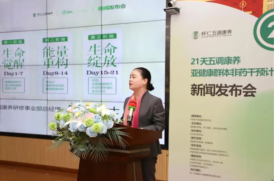发布会上,何承梅总经理介绍“五调觉醒营”计划。该计划以“自然医学与现代医学”相结合,致力于帮助亚健康人群及慢性病患者,通过非药干预的方式,实现全身心的调理。课程设计科学系统,分为生命觉醒、能量重构、生命绽放三个阶段,每个阶段都有明确的目标和内容安排。