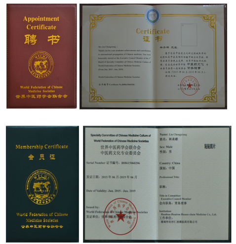 2015年6月12日,在世界中医药学会联合会中医药文化专业委员会首届成立大会上,怀仁健康产业集团董事长林承雄由于“在中医药文化研究领域取得的成绩和在中医药国际传播中做出的贡献”,经专业委员会民主选举,世界中联秘书处批准,当选为中医药文化专业委员会第一届理事会常务理事。