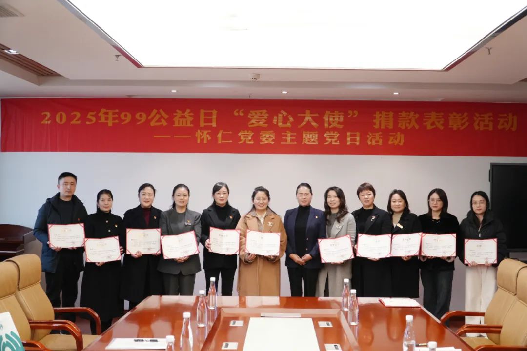 大会在庄严的《国际歌》声中拉开序幕,会议由党委组织委员李劲湘主持。党委宣传委员蒋忠权同志首先通报了2025年“9.9公益日”主题党日捐款情况:9月27日-30日,组织党员、群众开展了为期4天的捐款活动,用于支援困难老人、困难家庭和贫困学生等弱势群体。怀仁集团组织支部党员、积极分子、发展对象、员工募捐,各公司、各部门中高管带头,累计参与爱心捐款活动达119人。党委书记陈毳萍为表彰爱心举措,向积极参与的党员及员工代表颁发了“爱心大使”证书。