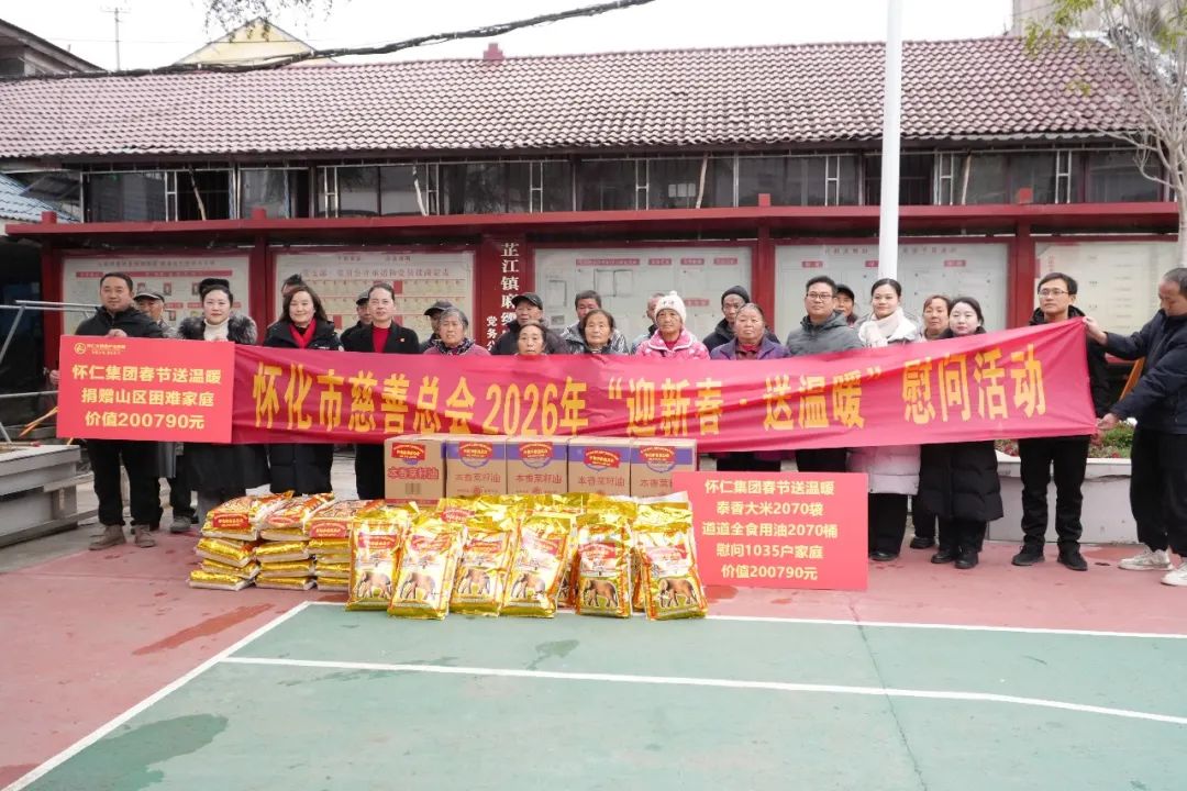 1月30日,在农历新年即将到来之际,怀仁集团再次以实际行动践行企业社会责任,通过怀化市民政局、市慈善总会,向全市山区1035户困难家庭送去了丰厚的春节慰问物资。本次捐赠物品包括泰香大米2070袋、道道全食用油2070桶,捐赠总价值达200790元,用实实在在的关爱为困难家庭带来温暖与希望。怀化市民政局慈救中心主任、市慈善总会办公室负责人李贞妮,怀仁集团党委书记、副董事长陈毳萍等参加捐赠仪式。