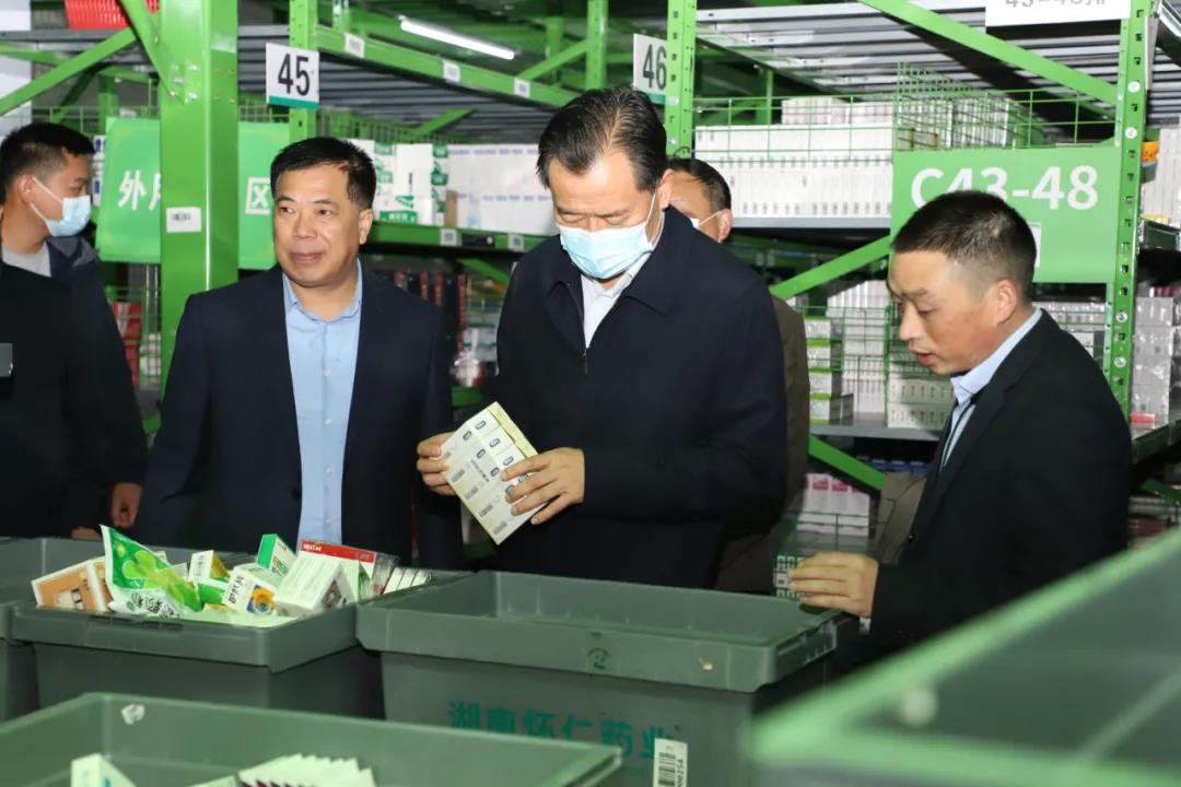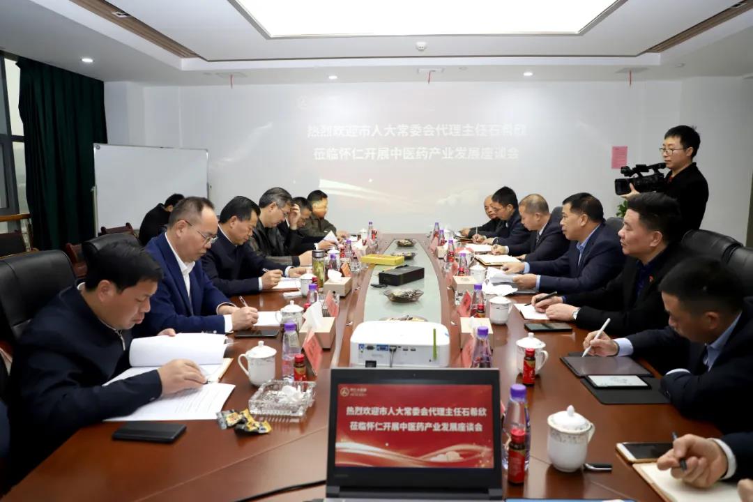 2021年11月16日,怀化市人大常委会党组书记、代理主任石希欣一行调研怀仁中医药产业发展。市人大财经委主任委员唐拥军 ,市人大教科文卫委主任委员王世杰, 市人大常委会研究室主任陈志强,市科技局党组书记、局长李兴华, 市卫健委党委委员、副主任罗兴玉参加调研。怀仁大健康董事长林承雄、副总裁舒敏、博世康总经理蒋忠权、怀仁医养总经理王祥刚参加接待。