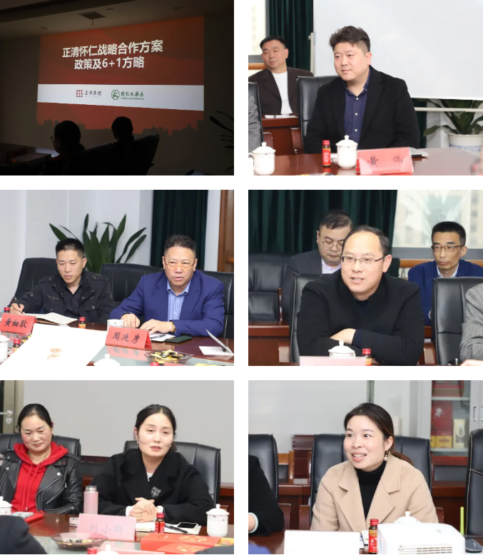战略合作洽谈会在轻松愉快、坦诚务实的气氛中举行。林承雄董事长对吴飞驰董事长一行的到来表示欢迎,正清集团一直是怀仁的优质供应商,双方有着深厚的合作基础,希望通过此次洽谈双方能够全面深化战略合作,强强联手,合作共赢。上海凯纳黄炜总监介绍正清灵芝品牌战略及广告宣传方案,正清集团朱志国总经理介绍正清灵芝产品合作政策及地推 6+1 方案。经过深入交换意见,双方达成战略合作意向。
