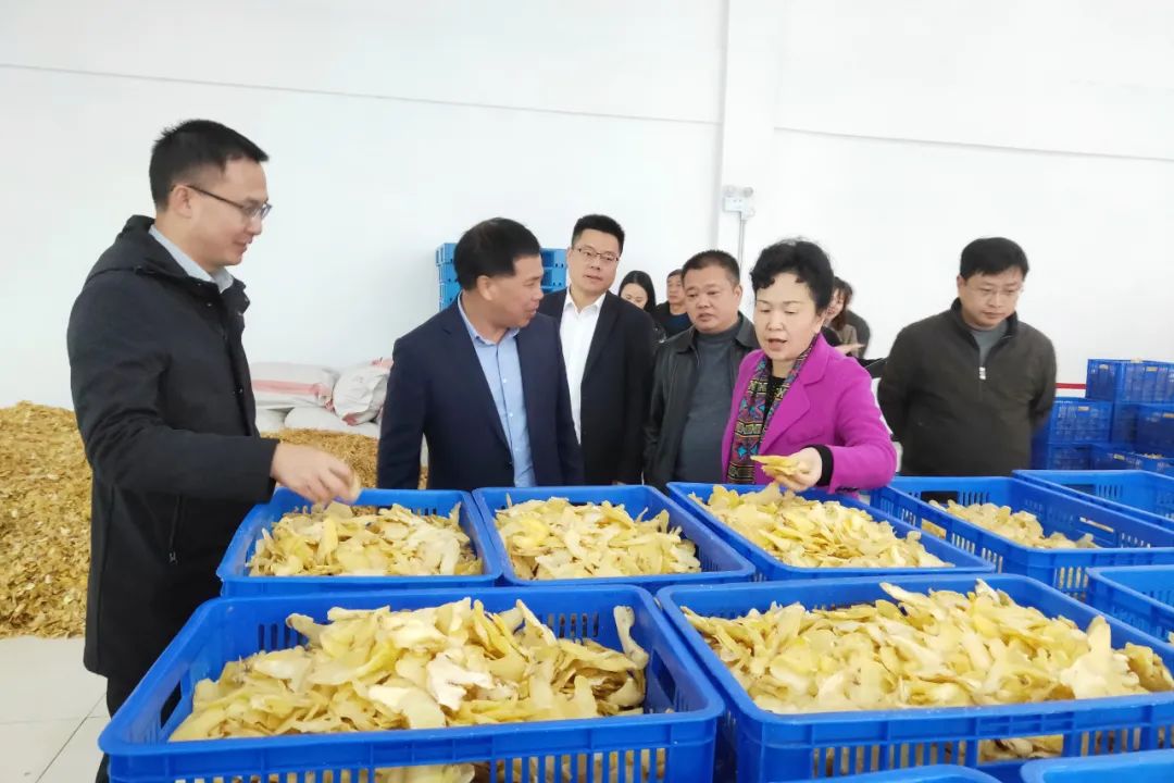 随后,杨林华副市长一行前往博世康新晃黄精城进行了参观指导。新晃黄精城建筑面积14000平方米,日加工能力50吨,拥有先进节能环保型空气能烘干生产线17条、黄精切片生产线16条、冷藏库1200立方米。同时,正在启动占地50000平方米黄精加工及边贸交易中心二期工程!杨副市长深入黄精城加工流水线,依次参观了黄精加工各个车间,详细了解黄精种类、制作工艺、加工流程、产品类型、市场行情等情况,并与随行人员深入交流,详细了解黄精产业种植面积、加工能力、集散规模、销售效益。杨副市长边看边称赞林承雄董事长是一个脚踏实地做实事的人,能在这么短的时间内构建实体工厂并投产,并且产能达到如今的规模,展现出怀仁博世康积极推进中医药发展项目的决心与魄力。