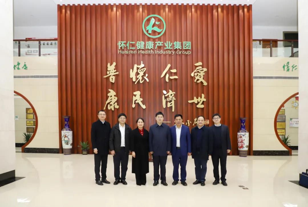 2021年12月16日,中国建设银行湖南省分行副行长戴建军、公司业务部总经理安利、普惠金融事业部副总经理牛永炯、公司业务部客户三组组长黄波来怀仁大健康调研。建行怀化市分行行长吴曙华、副行长李西新、公司部经理余晓琼,以及怀化市太平桥支行行长王祎陪同。怀仁大健康董事长林承雄、副总裁刘小群热情接待。