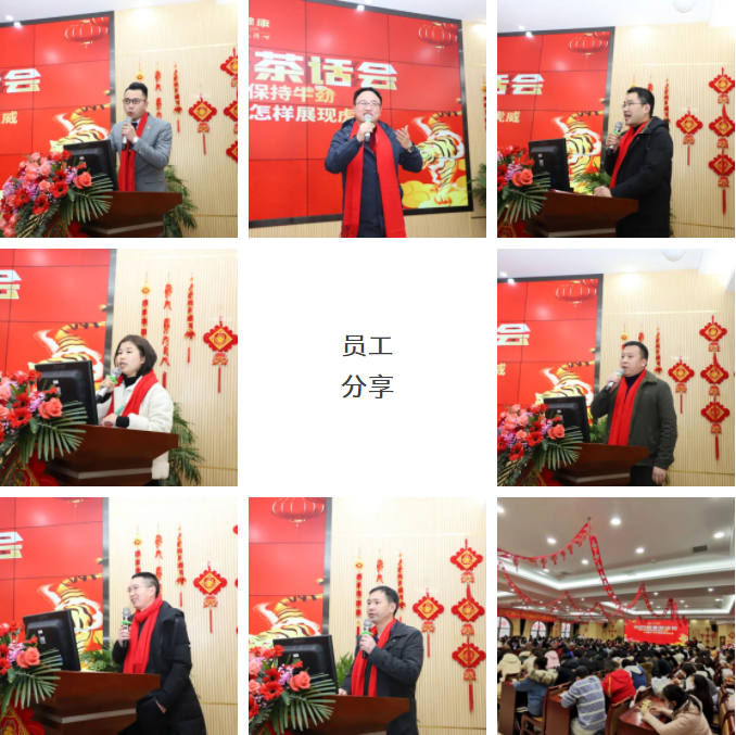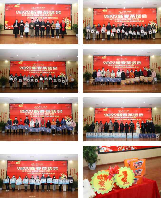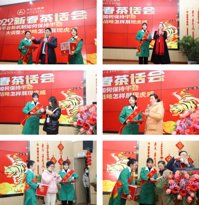 最后主持人舒敏副总裁希望大家以2022新春茶话会为契机,深刻领会董事长讲话精神内涵,以饱满的工作热情,脚踏实地的工作态度,开拓创新的工作方法,互帮互助的团队精神,面对2022的各种风险挑战。不断发扬孺子牛、拓荒牛、老黄牛、怀仁牛精神,干工作以真抓的实劲、敢抓的狠劲、善抓的巧劲、常抓的韧劲,与时代同行、与梦想同在、与公司同心;以高度的使命感、责任感,勇担责任,勇赴使命,开拓创新,用汗水浇灌收获,以实干笃定前行,完成必完美,出手必出彩!以虎的力量、勇敢、无畏,以虎虎生威的雄风、生龙活虎的干劲、气吞万里如虎的精神,谱写大健康服务新篇章,开启中医药、康养产业新征程!