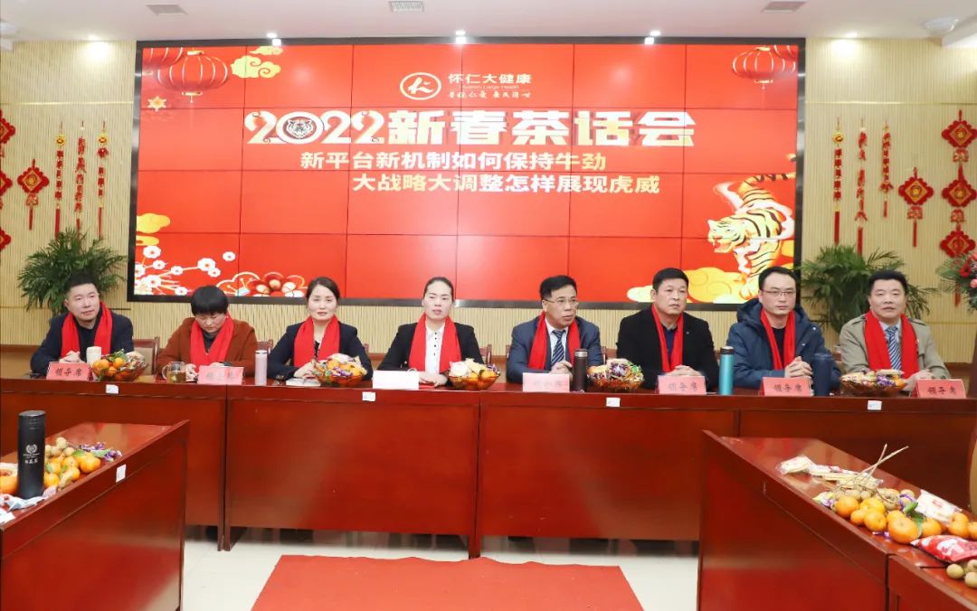 2022年2月7日,虎年新年开工第一天,怀仁集团2022年新春茶话会圆满举行。怀仁大健康董事长林承雄、党委书记陈毳萍、常务副总裁姚亮贤、副总裁刘小群,以及总部后勤员工、各分公司员工代表欢聚一堂,喜迎新春、畅叙收获、共话未来。怀仁副总裁舒敏主持茶话会。