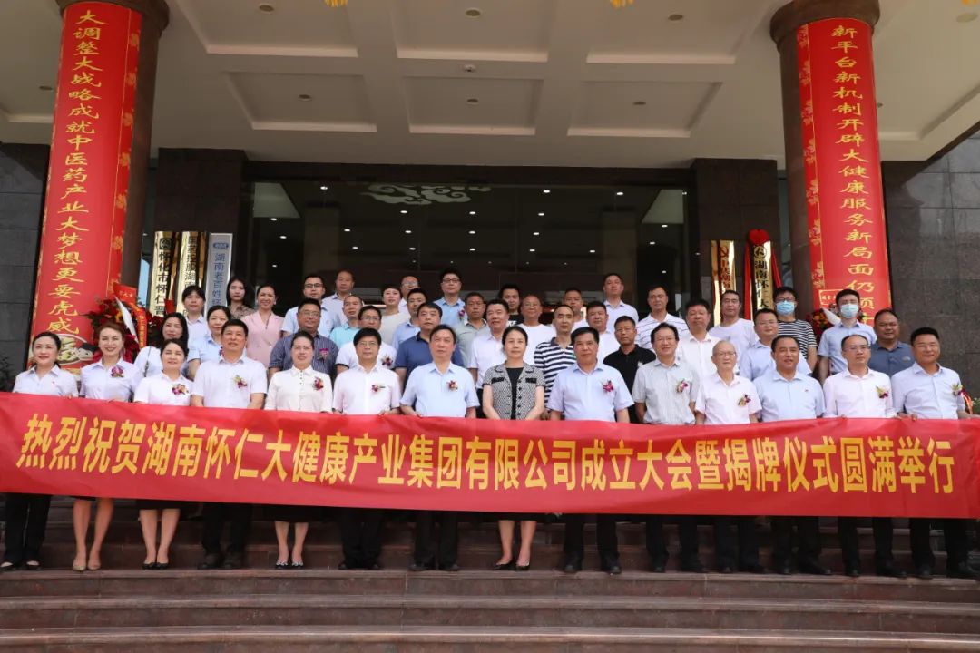 怀化市人大常委会副主任向建平,怀化市人民政府副市长向秀亮,湖南医药学院校长何清湖,怀化市人民政府副秘书长丁琼,鹤城区委常委、副区长向茂森,怀仁大健康产业集团董事长林承雄共同为湖南怀仁大健康产业集团有限公司揭牌。