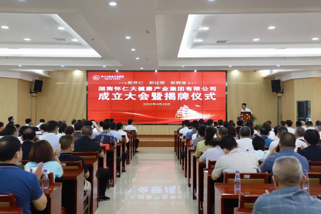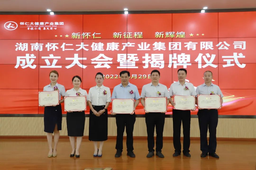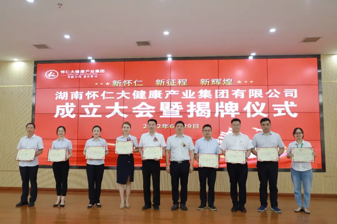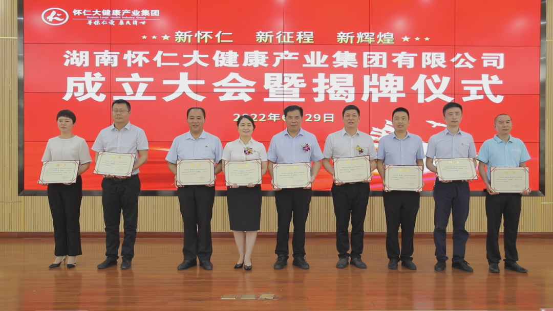 会上,怀化市市场监管局负责人颁发湖南怀仁大健康产业集团有限公司营业执照;林承雄董事长宣布《关于怀仁健康产业集团公司组织架构及部门设置的通知》、《分子公司及关联版块第一负责人的任职通知》;陈毳萍书记宣布《关于集团总裁室成员任职及分工的通知》;姚亮贤常务副总裁宣布《关于集团各部门负责人岗位任职的通知》。