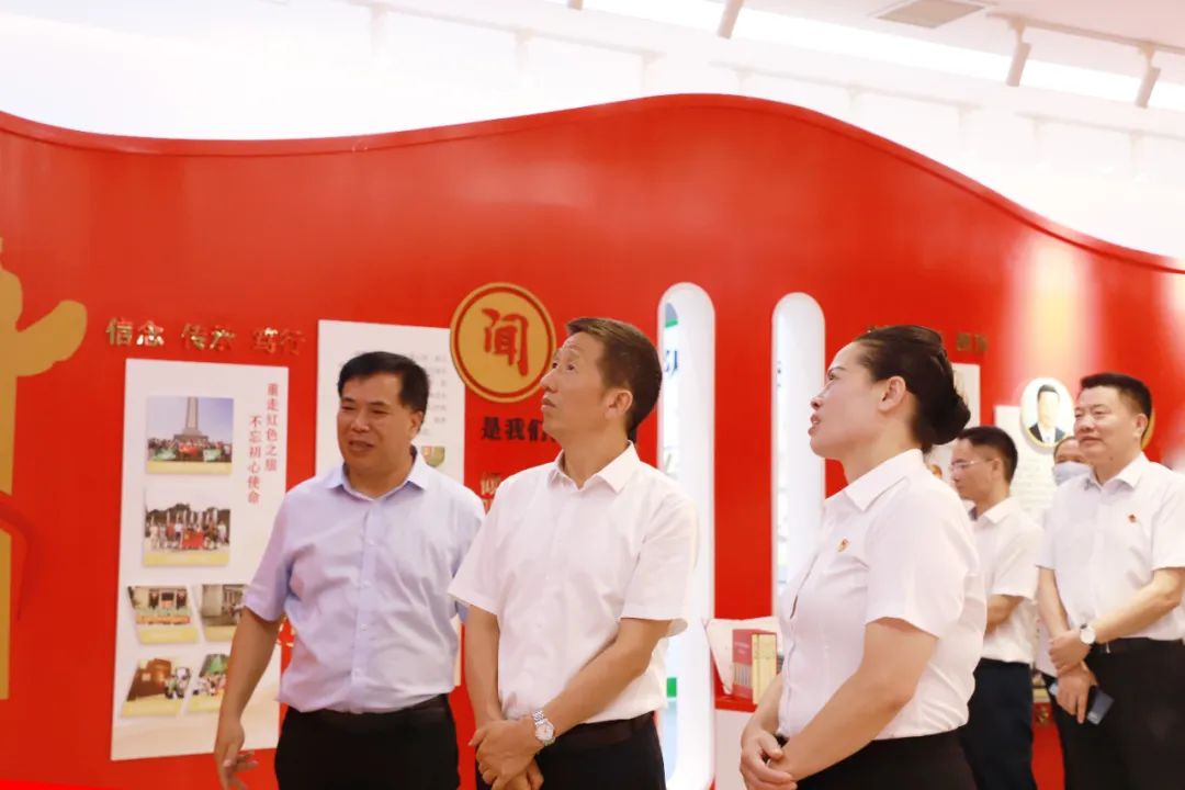 调研中,许书记看产品、问经营、了解企业生产运营情况。在怀仁党建展厅,当得知企业非常重视党建工作,形成了特色的“望闻问切”党建工作方法,坚持把党员培养成骨干,把骨干培养成党员时,他对怀仁党建工作给予了高度肯定。在林承雄董事长亲自题写的“远志从容感党恩 厚朴细心尚司风”对联前,许书记专门听取了其含义,并称赞道:“你是一位有文化、有担当、有情怀的企业家!”