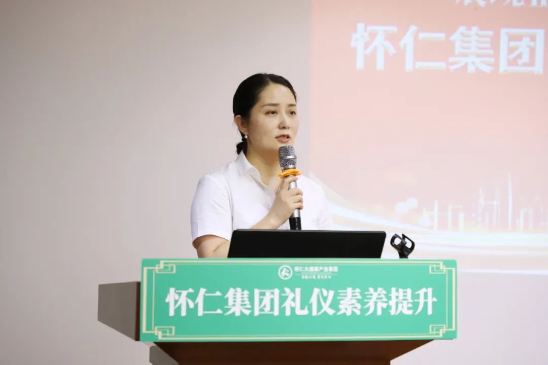 为不断提升员工个人修养,充分展现怀仁人积极向上的精神风貌,在集团党委书记陈毳萍的关心支持下,8月23日,怀仁集团组织开展礼仪提升培训活动,特邀环球礼仪商学院高级讲师张莉丽授课并现场指导。怀仁集团副总裁兼怀仁医养总经理刘小群出席,各分子公司近40名员工参加。