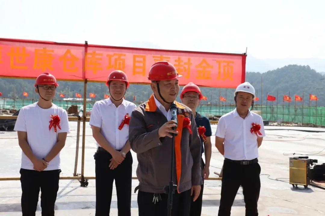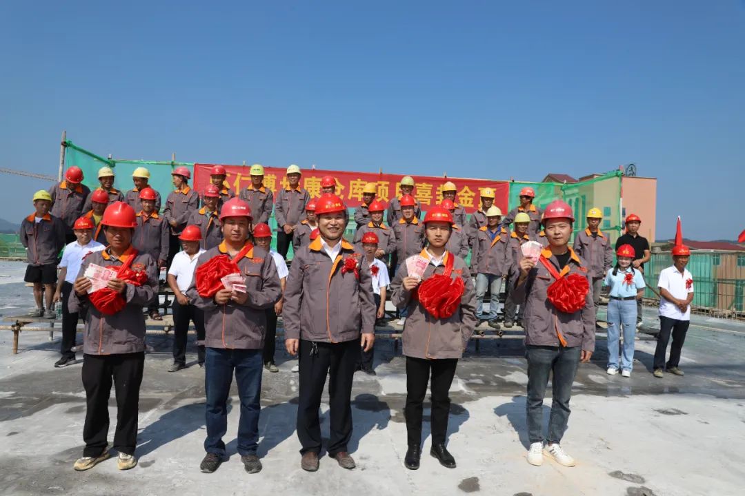 在大家的瞩目之下,现场所有领导嘉宾将最后一斗水泥浇筑成功,怀仁博世康黄精立体仓库项目顺利封顶。