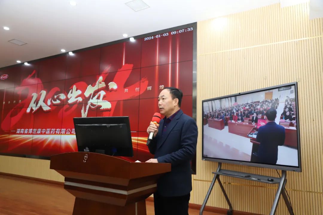 新起点,再起航。2024年1月3日,湖南省博世康中医药有限公司“从心出发”2024年启动大会成功召开。怀仁集团董事长林承雄出席会议并作动员报告。会上宣布《2024年博世康组织机构设置及职能划分》、《博世康总经理室成员任职分工的通知》、《有关管理岗位的任职通知》。