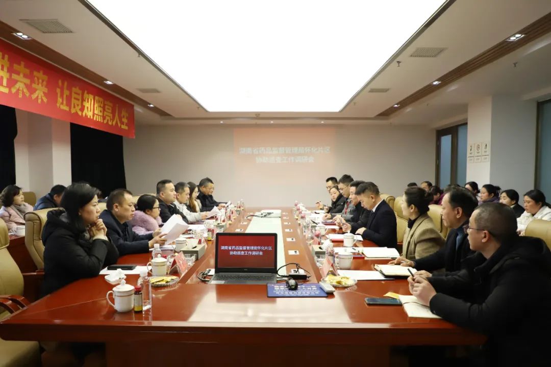 2月29日,湖南省药品监督管理局检查分局副局长李勋、三级调研员王雷、四级调研员李琼一行调研怀仁集团。怀化市市场监督管理局党组成员、副局长李坊平陪同。受怀仁集团林承雄董事长委托,集团副总裁舒敏作热情接待,老百姓怀仁药房总经理何感、博世康总工程师陈三春参加。