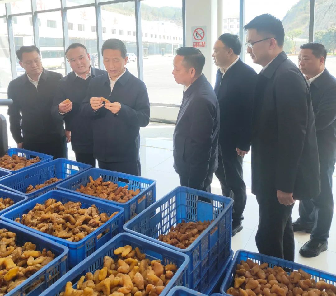 3月19日下午,怀化市委书记许忠建来到怀仁博世康新晃黄精城调研企业研发、生产、经营情况。许书记进车间,问生产,勉励企业坚定发展信心,深耕黄精产业勇攀新高。许书记表示,要加强与科研院所合作,支持龙头企业做大做强,推动全产业链发展。