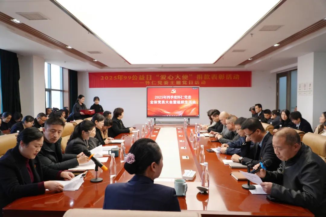 为深入贯彻落实上级党组织工作要求,全面总结年度党建工作成效,筑牢思想政治根基,12月25日,怀仁集团党委在总部11楼会议室召开第四季度党员大会暨组织生活会。怀仁集团党委书记陈毳萍、各支部全体党员、预备党员、入党积极分子等共同参加了本次集政治学习、年度总结、民主评议于一体的重要会议。