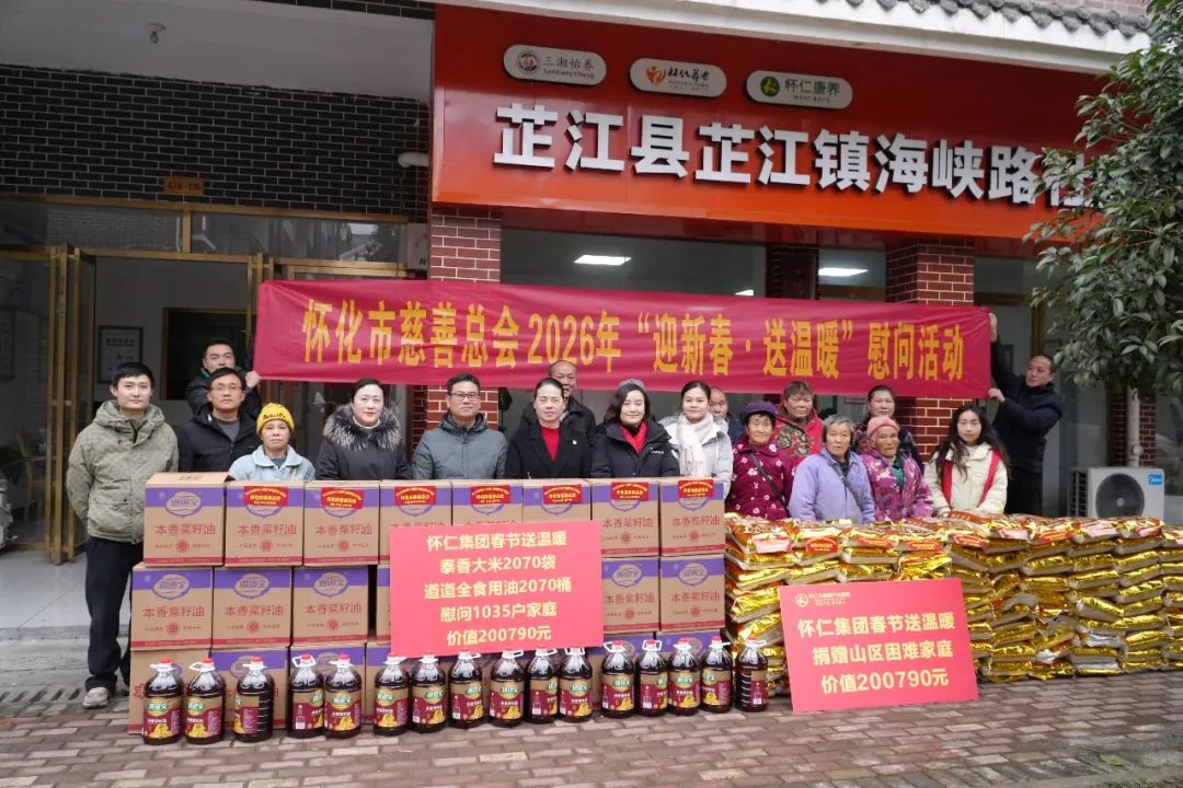 1月30日,在农历新年即将到来之际,怀仁集团再次以实际行动践行企业社会责任,通过怀化市民政局、市慈善总会,向全市山区1035户困难家庭送去了丰厚的春节慰问物资。本次捐赠物品包括泰香大米2070袋、道道全食用油2070桶,捐赠总价值达200790元,用实实在在的关爱为困难家庭带来温暖与希望。怀化市民政局慈救中心主任、市慈善总会办公室负责人李贞妮,怀仁集团党委书记、副董事长陈毳萍等参加捐赠仪式。